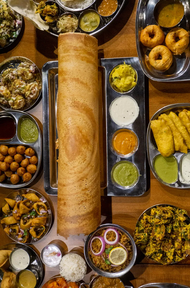 (Masala Vada, Medu Vada, Idly Sambhar, Bhaji: Aloo/Mirchi, Chicken 65, Chilli chicken, Tandoori chicken, chicken tikka)